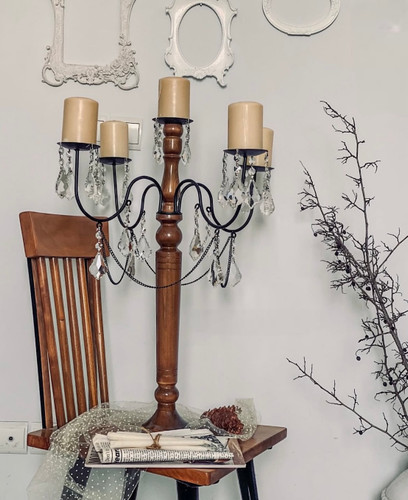 شمعدان چوبی پنج شعله ی فلزی